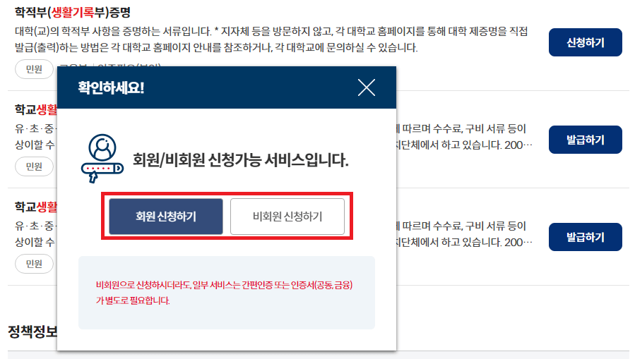 ③ 로그인이 필요합니다. 비회원의 경우, 간단한 인증절차를 통해 이용이 가능하니 편한 대로 선택하면 됩니다.