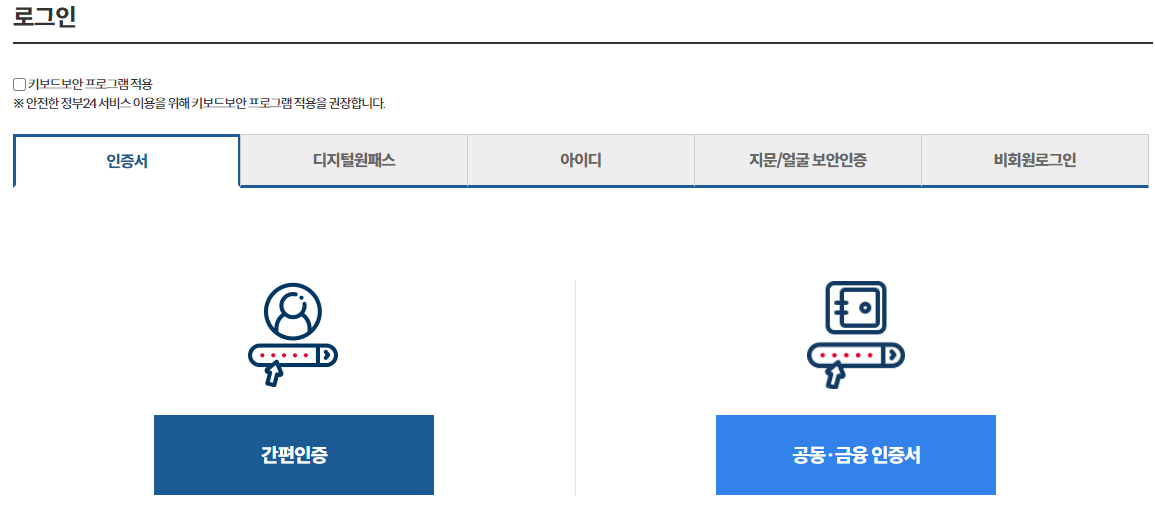 ⑤ 편한 인증서 선택 후, 정보입력 및 동의 후 인증요청을 진행합니다.