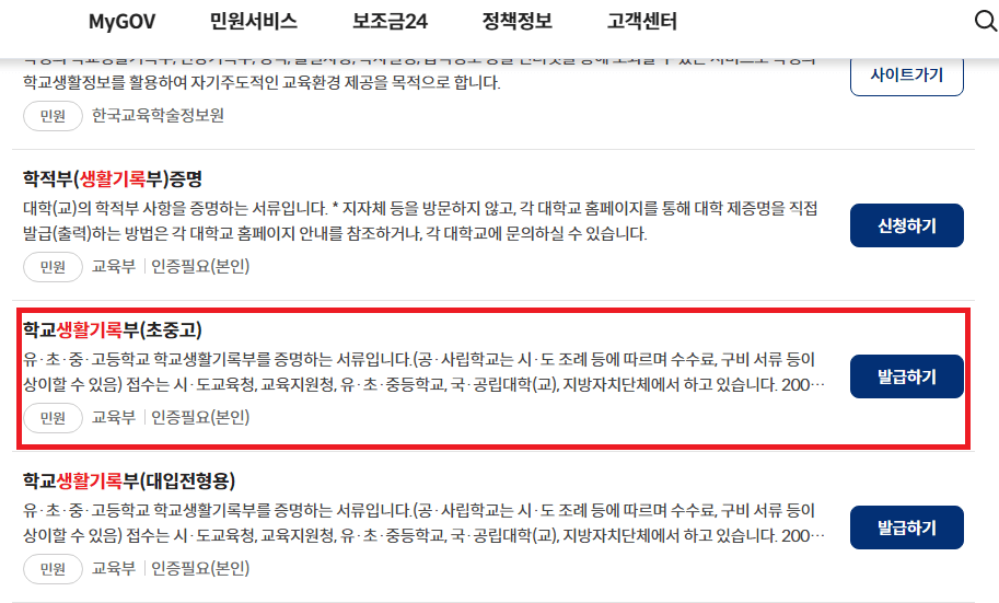 생활기록부 발급하기