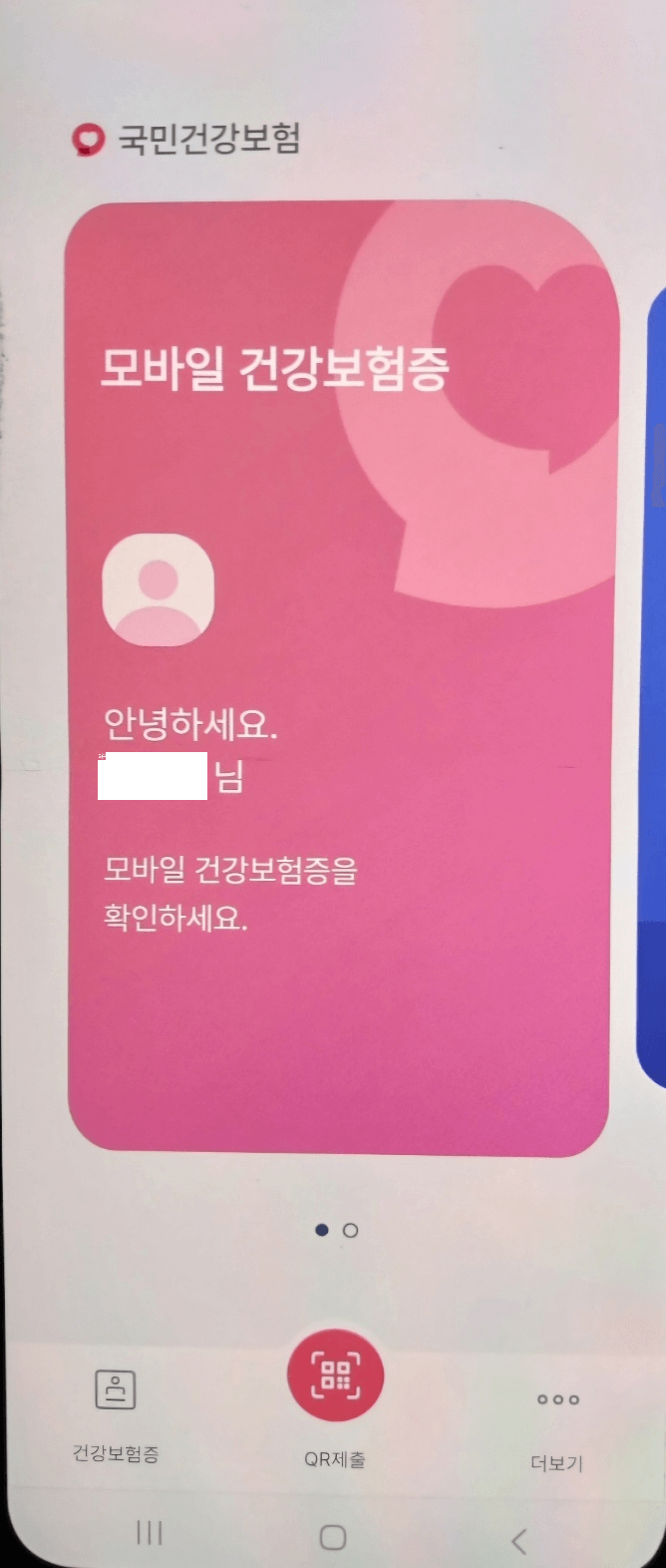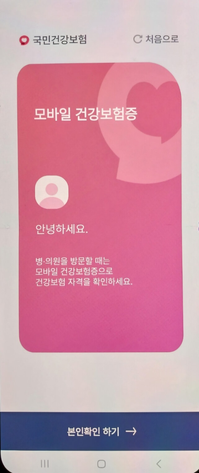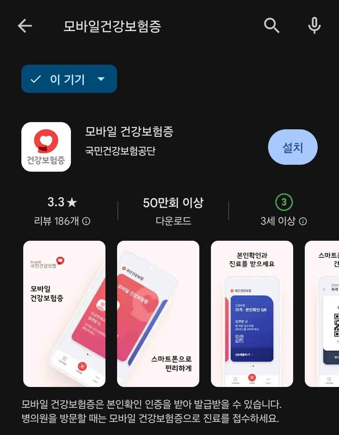 1️⃣ 구글스토어 또는 앱스토어에서 "모바일 건강보험증"을 검색 후 다운로드 합니다.