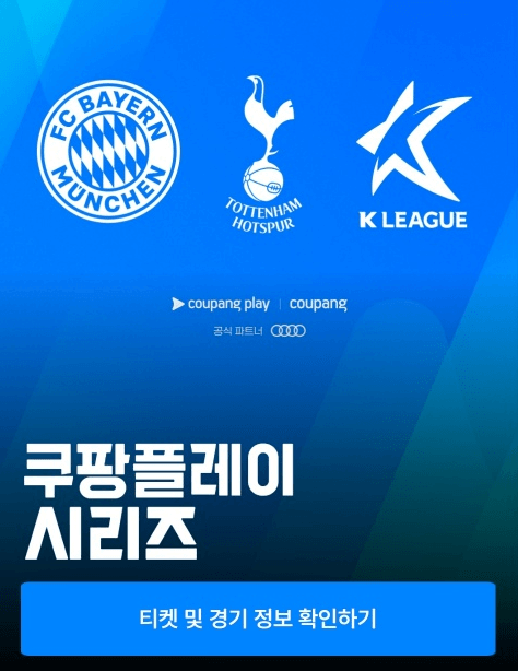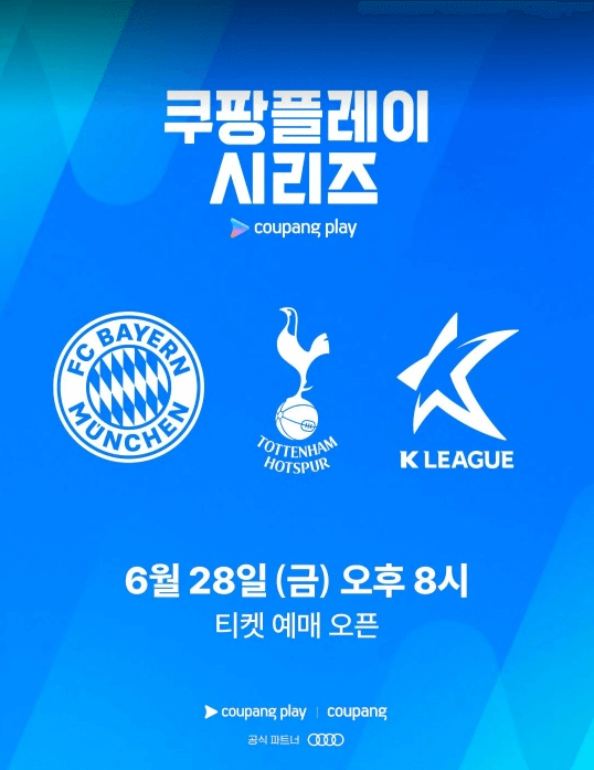 ⏩ 토트넘 뮌헨 내한경기 예매는 6월 28일(금) 오후 8시에 쿠팡플레이 앱에서 진행됩니다.