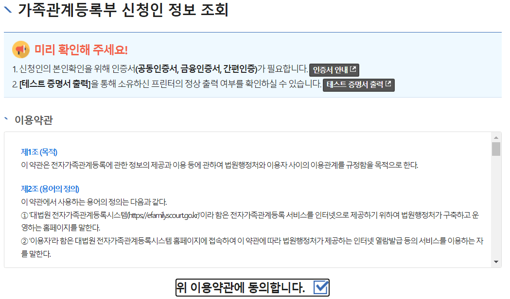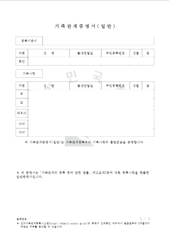 ⑦ '가족관계증명서' 최종 출력화면입니다.